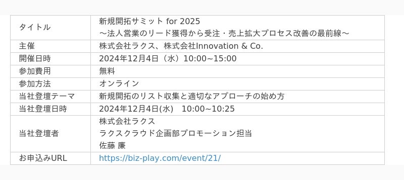 ラクス、「新規開拓サミット for 2025 〜法人営業のリード獲得から受注・売上拡大プロセス改善の最前線〜」を12/4(水)に開催