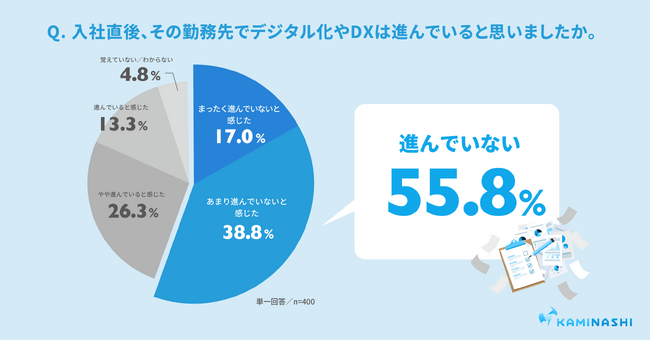 Z世代の5割以上が「新卒で入社した勤務先ではデジタル化・DXが進んでいないと感じた」と回答