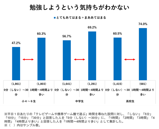 ※2 ゲーム時間の長い子どもの方が、学習意欲が低い