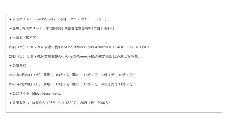 ヘッドライナーにはENHYPENが登場!LIL LEAGUE、BLANK2Y、ONE N’ ONLY、OnlyOneOf、Weeekly、岩橋玄樹、超特急も出演