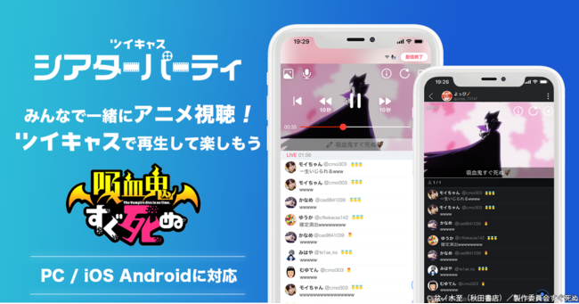 モイ株式会社(本社:東京都千代田区 代表:赤松 洋介)は、同社が運営するライブ配信プラットフォーム「ツイキャス」にて、2022年3月5日(土)21:00よりTVアニメ「吸血鬼すぐ死ぬ」全12話を3週連続で上映することをお知らせいたします。