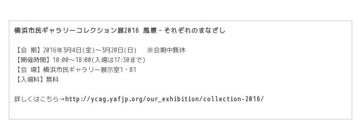 横浜市民ギャラリーコレクション展2016「風景ーそれぞれのまなざし」