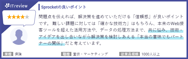 株式会社Sprocketは、コンバージョンを最大化するプラットフォームと長年の実践データから培われたメソッドを用いたコンサルティングで、ユーザーに理想的な顧客体験を提供する会社です。 「テクノロジーで、人と企業が高め合う関係を作る」をミッションに、ビジネス成長に貢献していきます。