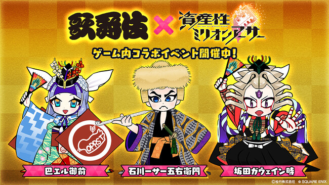 株式会社スクウェア・エニックス(本社:東京都新宿区、代表取締役社長:桐生 隆司、以下当社)は、当社初のNFTプロジェクト『資産性ミリオンアーサー』にて、松竹株式会社(本社:東京都中央区、代表取締役社長:高橋敏弘)との歌舞伎を題材としたコラボレーションのゲーム内コラボイベントを開催したことをお知らせいたします。