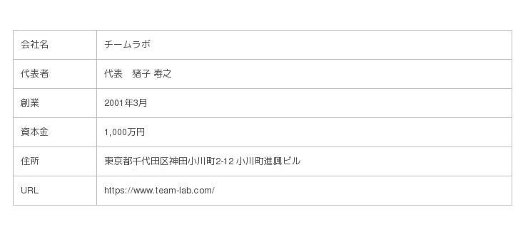 最新のテクノロジーを活用したシステムやデジタルコンテンツの開発を行うチームラボは、プログラマ、エンジニア、CGアニメーター、絵師、数学者、建築家、ウェブデザイナー、グラフィックデザイナー、編集者など、デジタル社会の様々な分野のスペシャリストから構成されているウルトラテクノロジスト集団です。アート、サイエンス、テクノロジー、クリエイティビティの境界を越えて、集団的創造をコンセプトに活動しています。