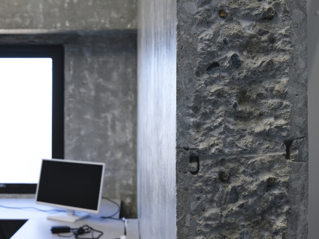 コンクリートが剥き出しになった壁や、職人のメモ書きの跡からは元のホテルの姿を想像することができます。