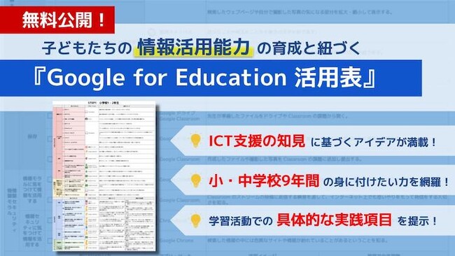 【無料公開】子どもたちの情報活用能力を着実に育む『Google for Education(TM) 活用表』をリリースいたします!