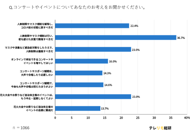 まず「コンサートやイベントについてあなたのお考えをお聞かせください」というアンケートを行い、再開するイベントに対しての意識調査を実施しました。