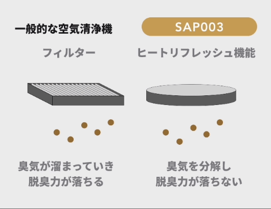 1.ヒートリフレッシュ機能で「脱臭力が落ちない」
