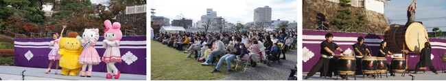 信玄公祭り最終日の30日(日)は、前日に引き続き、信玄グルメ横丁や賑わい城下町では山梨県内のグルメを楽しむことができました。また、舞鶴城公園特設ステージでは甲府囃子の演奏やサンリオのスペシャルステージ、またお笑い芸人による爆笑ステージを実施しました。フィナーレには迫力ある和太鼓の演奏が舞鶴城公園に響き渡り、多くの来場者がまだまだ終わらないお祭りムードを満喫しました。