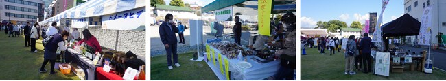 舞鶴城公園南広場では、風・林・火・山の4つのゾーンに分かれて、風ゾーンではワインや日本酒などの地酒、林ゾーンではしいたけやキクラゲなどの林産物、山ゾーンでは山梨県の地鶏や野菜などの農畜産物等、山梨県の優れた地場産品の販売や展示を行いました。また、PRブースが集まる火ゾーンでは、浜松市やNHK甲府放送局が、来年放送される大河ドラマ「どうする家康」のPRを行いました。会場は、山梨のイイモノを求めるお客様で大盛況でした。