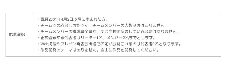 高校生・高専生(3年生以下)の学生を対象としたUnityおよびプログラミング技術習得の奨励、才能の発掘を目的として行われるゲーム開発の全国大会です。