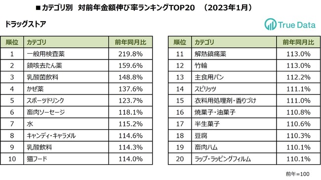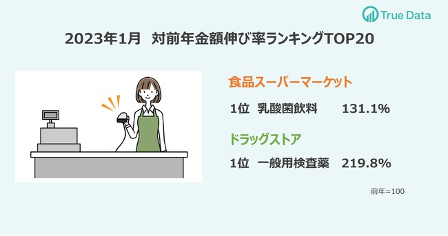 ~ドラッグストア、食品スーパーマーケット 2023年1月の対前年伸び率TOP20カテゴリを発表 ~