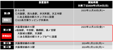 ※『大阪環状線NFT駅スタンプラリー』の実施に関するプレスリリース(2023年11月22日):https://www.westjr.co.jp/press/article/2023/11/page_23904.html