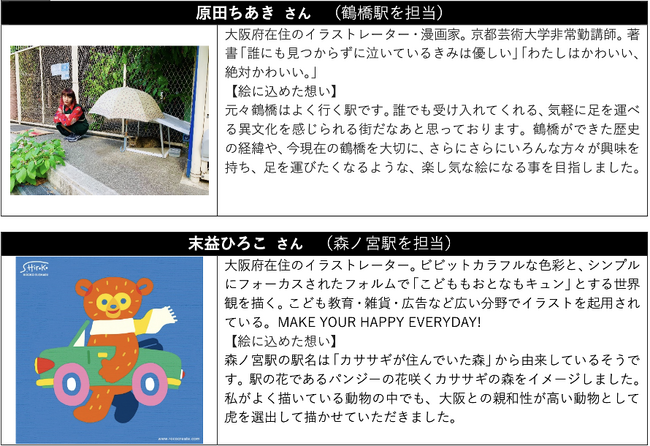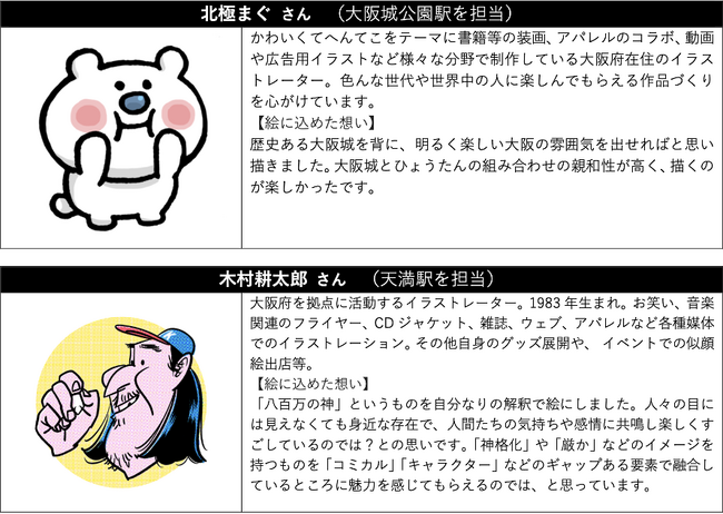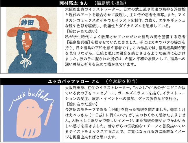 第1弾に引き続き、オリジナルNFT駅スタンプの製作には、関西にゆかりのあるイラストレーター・アーティストにデザインをお願いし、この企画だけのオリジナル駅スタンプに仕上げています。