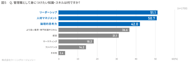 4. 管理職の5〜6割が「部下の育成」に悩み、必要なのは「リーダーシップ」「人材マネジメント」スキル