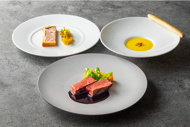 温かい雰囲気のオールデイダイニング「セリーズ」では、新たにシェフに就任した矢口健太が、3種類から選べるメイン料理が魅力の夏のコース料理をお届けします。フランスの伝統料理 パテ・アン・クルートから始まり、とうもろこしにスモークをかけた香ばしい香りのコーンスープ、そしてメインには鱸(すずき)のグリル、蝦夷鹿のサルシッチャ、または国産牛サーロインのグリルをお楽しみいただけます。