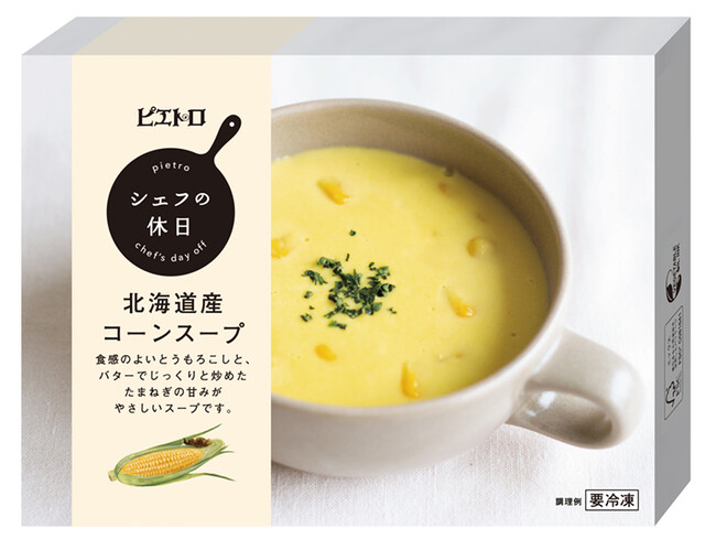 プレミアム冷凍シリーズ「シェフの休日」のコーンスープがさらに口当たり良く、味わい豊かにリニューアル