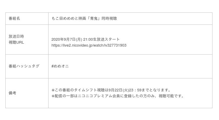 「もこ田めめめと映画『青鬼』同時視聴」を生放送致します。