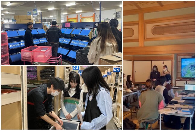 出荷倉庫の見学では、商品がどのような流れで倉庫に入りお客様のもとへ届くのかを学んでいただきました。