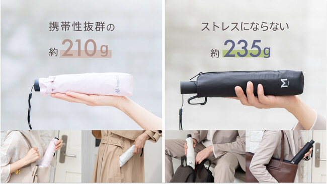 晴雨兼用×軽量コンパクトでおでかけにピッタリ。レディース用、メンズ用の2商品で販売します。