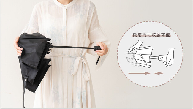 収納時にバネの反動で傘の手元が飛び出し、体に当たってしまった経験はありませんか?SARKは逆戻り防止機能付きなので段階的に収納が可能。たとえ途中で手を放しても手元が戻りません。安心安全に収納ができます。
