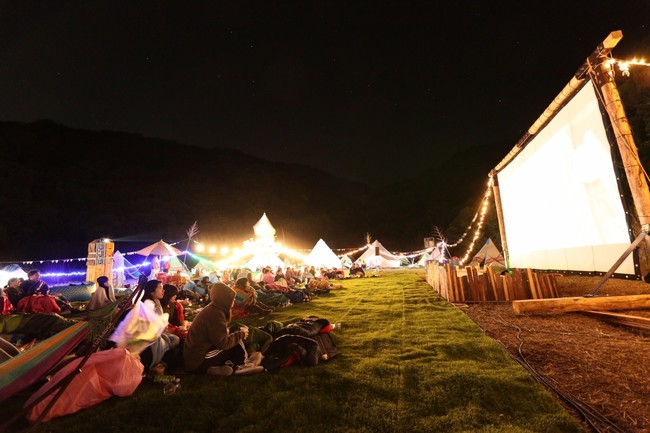 大自然の中の巨大スクリーンでゲームや映画鑑賞を楽しめる特別な空間をご用意しました。ドリンクやスナックを片手にゆったりとした時間をお過ごしください。