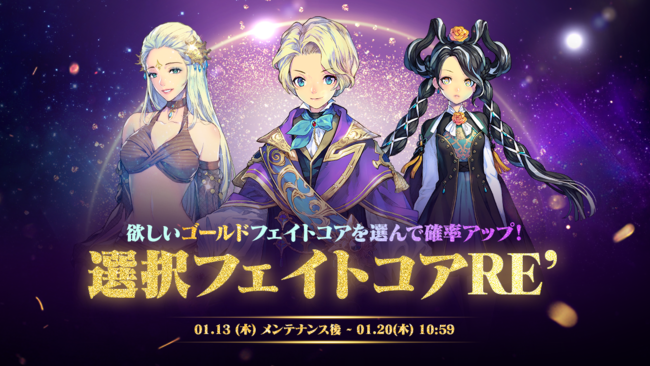『エグゾスヒーローズ』、77回の高級契約が無料になる新年イベント開催!さらに、ゴールドフェイトコアの選択確率アップイベントも開催!!