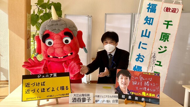 京都府福知山市は、鬼伝説のある大江山など「鬼の聖地」としての認知拡大のため、福知山市出身の人気お笑い芸人・千原ジュニアさんとコラボしたYouTube動画「ジュニアも知らなかった!福知山の鬼伝説」内でジュニアさんが考えたお題『「この鬼には絶対勝てる!!」その理由とは?』にSNS上で集まった1780件の回答の中から、大賞「ジュニア賞」としてguniguniさんの回答「近づけば近づくほどよく喋る」を発表します。