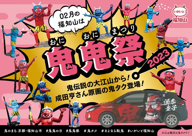 光秀が主人公の大河ドラマ『麒麟がくる』をきっかけに「明智光秀のまち」として全国的に注目を集める福知山市は、今、アニメ作品を契機とした鬼ブームの影響で「鬼のま ち」としても注目を集めています。2月には、「節分で追われる鬼たちよ、集まれ!」をコンセプトに、2月2日を「鬼鬼(0202)の日」と名付け、月末までを「鬼鬼祭」として、鬼づくしのイベントを展開します。