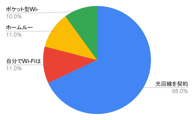 アンケートの68%が自宅で光回線を契約しているとのことでした。