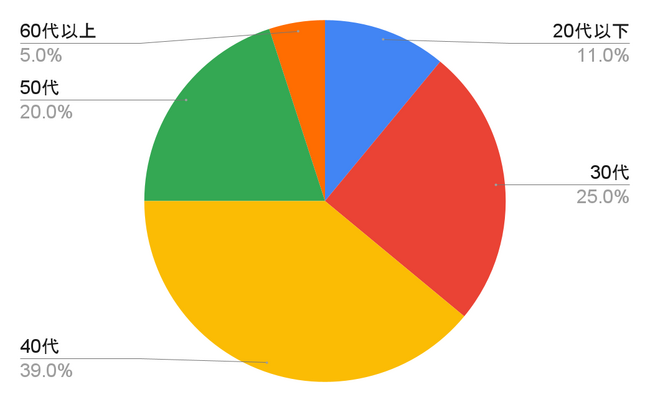 今回のアンケートでは男女ともに多く反応していただき、30代から40代を中心に多く回答いただきました。