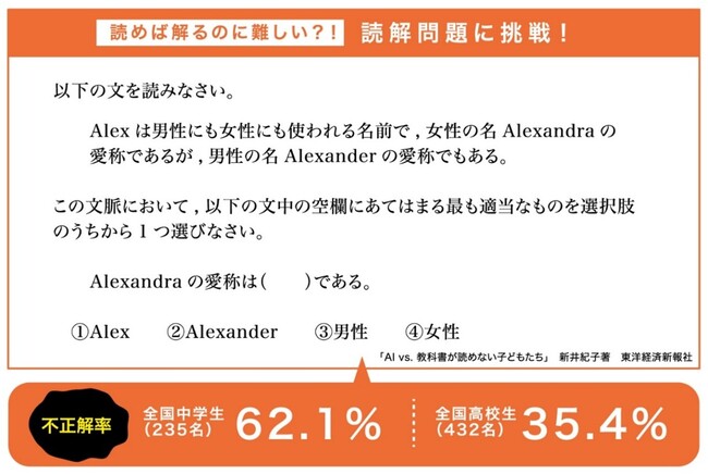 ※参考:新井紀子著(2018年)『AI vs. 教科書が読めない子どもたち』東洋経済新報社