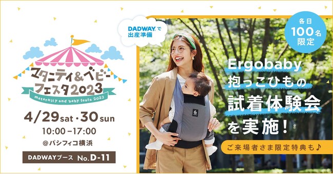 株式会社ダッドウェイ(本社:神奈川県横浜市、代表取締役社長:大野 浩人)は、2023年4月29日(土)・30日(日)に、パシフィコ横浜展示BCホールにて開催される『マタニティ&ベビーフェスタ2023』に出展します。