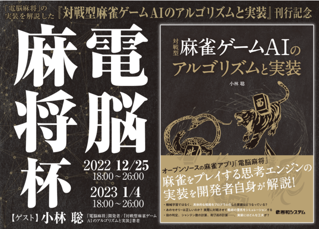 麻雀アプリ「電脳麻将」の開発者自身が解説! 『対戦型麻雀ゲームAIのアルゴリズムと実装』12月23日発刊!