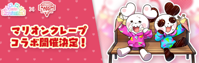 さらに!8月11日(木)から8月28日(日)の間、ハニプレと人気クレープショップ「マリオンクレープ」のコラボが決定!クマ丸とパンミィをイメージした全2種類のコラボクレープの販売や、描き下ろしイラストを使用したコラボグッズを販売いたします。あわせて、マリオンクレープとのコラボを記念したログインボーナスも開催いたしますので、是非奮ってご参加ください!