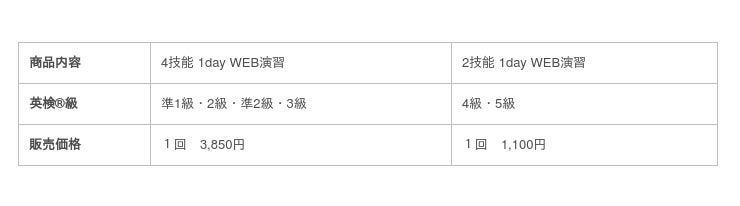 一次試験(ペーパーテスト)・二次試験(面接)を2日間の日程で行う従来型英検(R)に対し、4技能を1日で受験することが可能です。