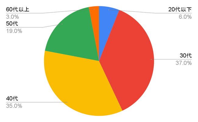 今回のアンケートでは女性の方が多く反応していただき、30代・40代を中心に多く回答いただきました。