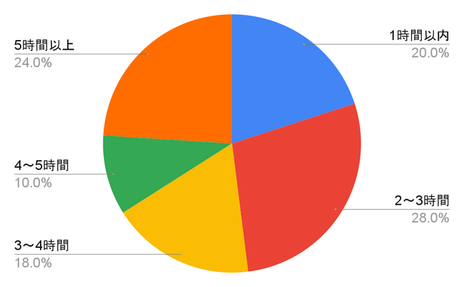 「5時間以上」と回答した方も24%と「2〜3時間」の次に多く、スマホの利用が日常で当たり前になっていることが分かります。