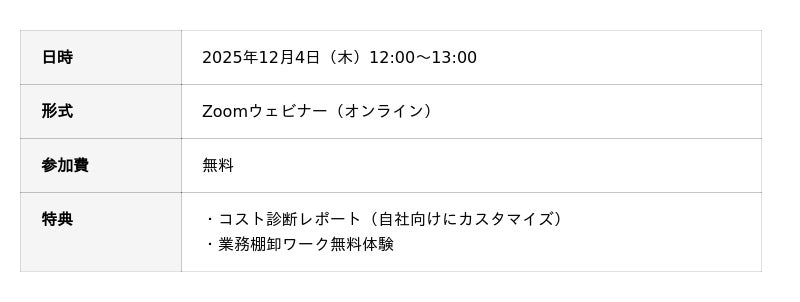 2025年12月4日(木)、株式会社給与アップ研究所と株式会社砺(あらと)の共催による無料オンラインセミナー『財務×労務【二刀流】コスト削減セミナー』 がZoomウェビナー形式で開催されました。