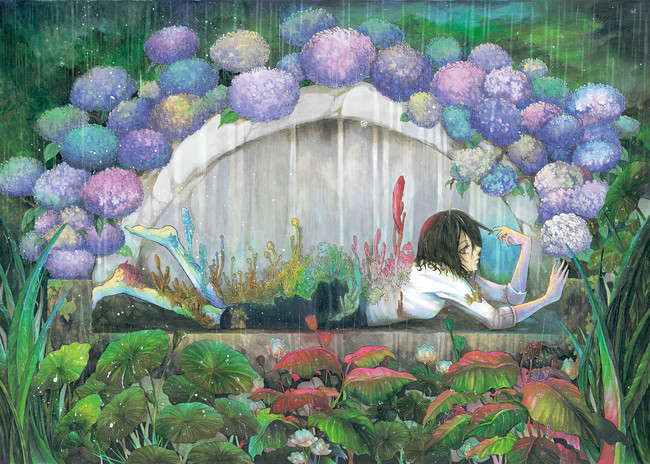 Scene3 蓮の葉/熱帯植物/あじさい/濡れた肌/光を受けた肌/濡れた髪/水をふくんだシャツ