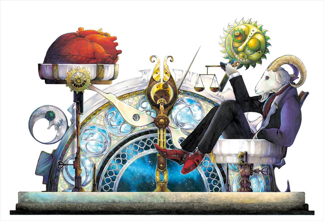 Scene1 打ち出し金属/歯車/台座/プラチナ/青空/夜空/角/山羊の毛/革靴/心臓