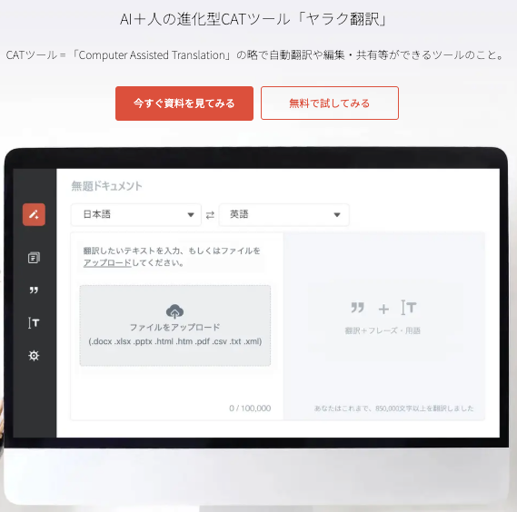 契約書やマニュアル、IR資料などの多言語化に貢献するヤラク翻訳のサービスを会場で体感いただけます。