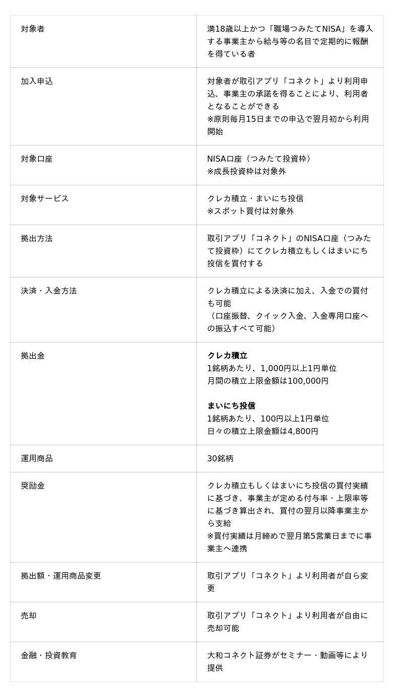 大和コネクト証券の職場つみたてNISAの特徴と概要