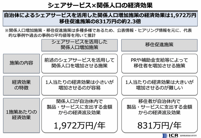 1施策あたりの経済効果は 1,972万円(移住促進施策の831万円の約2.3倍)
