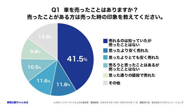 そこで、株式会社アクロスソリューションズと株式会社浜屋が共同運営している買取比較ちゃんねる(URL:https://www.hamaya-corp.co.jp/media )は、車を所持した経験のある20歳〜60歳以上の男女602人を対象に「車買取に関する意識調査」を実施しました。
