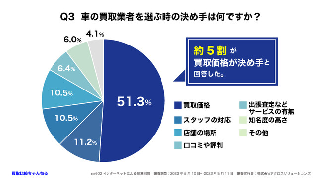 Q3 51.3%の人は「買取価格」を決め手に買取業者を選ぶと答えました。