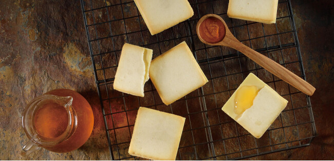 クッキーをトーストに見立て、メープル香るホワイトチョコレートをサンドしたフレンチトースト風味のクッキー。メープルの味・香りを存分に味わえる一品です。