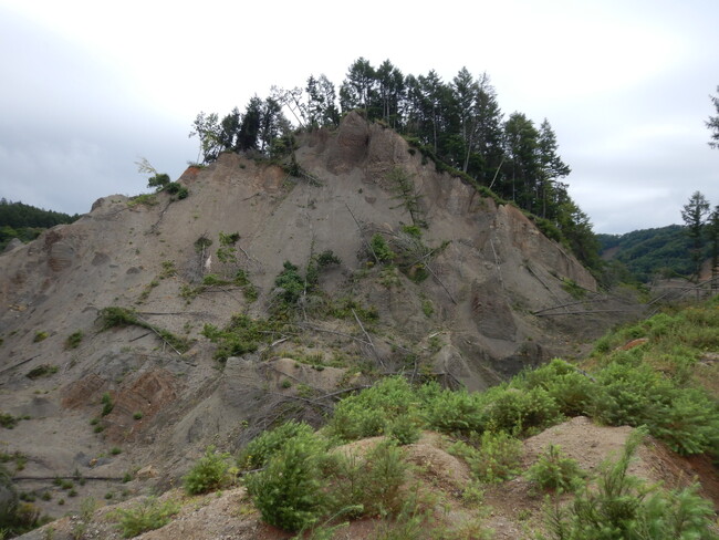 ▲ツアーで見学予定の崩壊跡(厚真町字幌内)