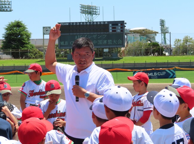 また、指導した元MLBプレーヤーからは、「一番大切なのは楽しむこと。子どもたちには、野球だけでなくいろいろなスポーツを行ってほしい。そうすることで選択肢を増やしていくことも重要なことだと思う。」「参加した子どもたちは、みんな金の卵。毎日の練習の積み重ねでうまくなるので頑張ってほしい。」など、参加した野球少年・少女の将来へ向けた応援メッセージをいただきました。